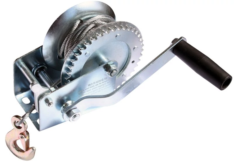 Kézi kötélcsörlő. Vonóerő 450 kg, acélkötél hossza 8 m A csörlő terhek húzására szolgál, pl. A szerkezet és a felületkezelés ellenáll a kedvezőtlen időjárási hatásoknak.