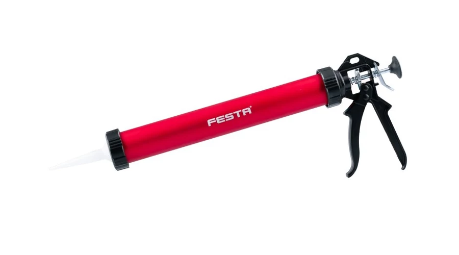 Extrudáló pisztoly 600 ml-es tubusokhoz, zárt cső alakú alumínium ház, kiváló minőségű megerősített acél mozgó- és tolómechanizmus, strapabíró fém fogantyú, tartalék hegyek - applikátorok 38014, felhasználás: tömítőanyagok extrudálásához 600 ml-es PVC tasakban.