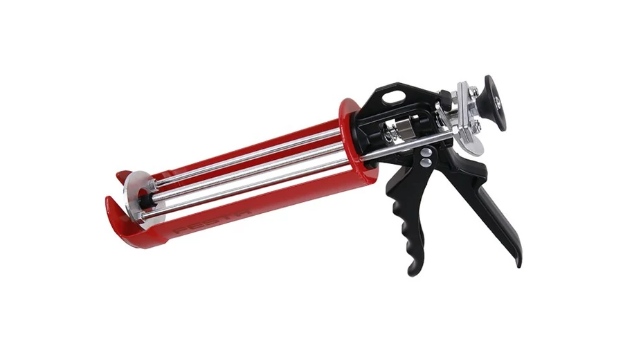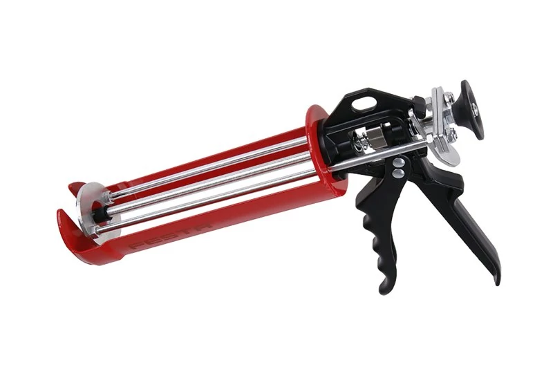 Extrudáló pisztoly vegyszerhorgonyokhoz, speciális alkalmazási pisztoly vegyszerhorgonyok extrudálásához 380 ml-es kiszerelésben, kiváló minőségű megerősített acél toló- és csúszómechanizmussal, tartós fém ergonomikus fogantyúval.