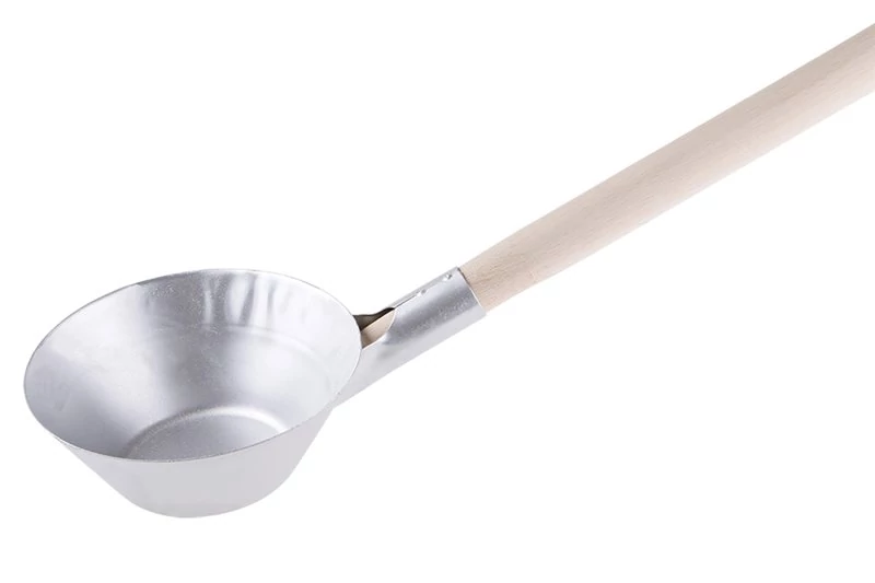 180 mm átmérőjű, 160 cm hosszúságú falazó üst (ventilátor) fa nyéllel. Felhasználás: építőanyagok mozgatása (habarcs, beton).