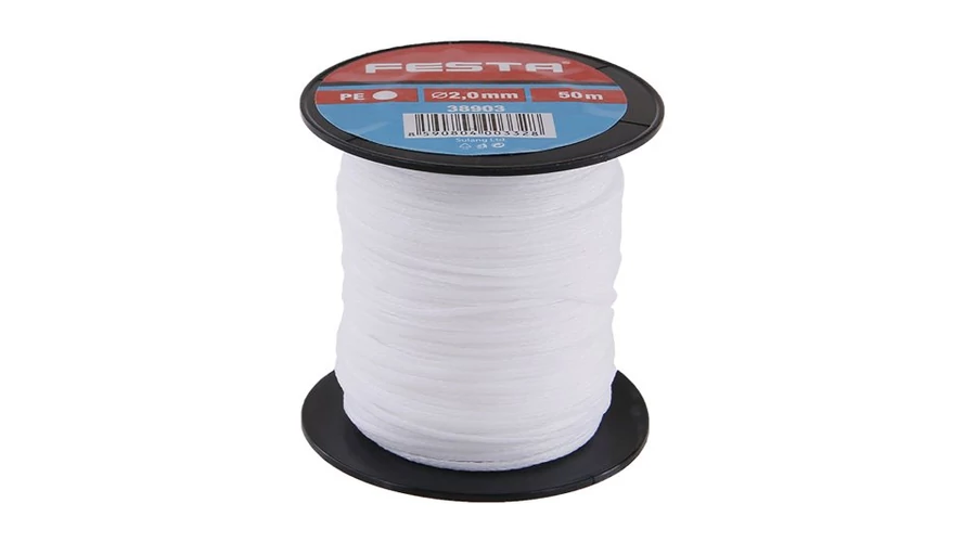 FESTA kőműves zsinór, anyaga PE (polietilén), vízálló, fonott - kiváló szakítószilárdságú, orsó - tekercs 50 m, felhasználás: építőiparban, háztartásban, kertben..., .