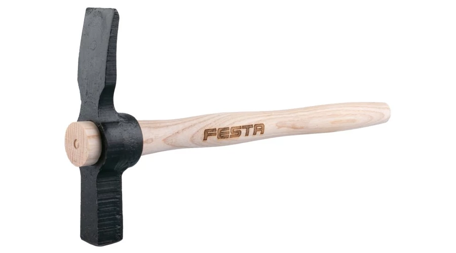 Falazókalapács 36 mm FESTA minőségi kőris nyéllel. A kőműves kalapács egyik oldala éles éllel van ellátva, amelyet főleg régi vakolat leverésére vagy tégla aprítására használnak. A másik oldal egy sík felület, amelybe homlokzati szögek és kapcsok vannak beütve.