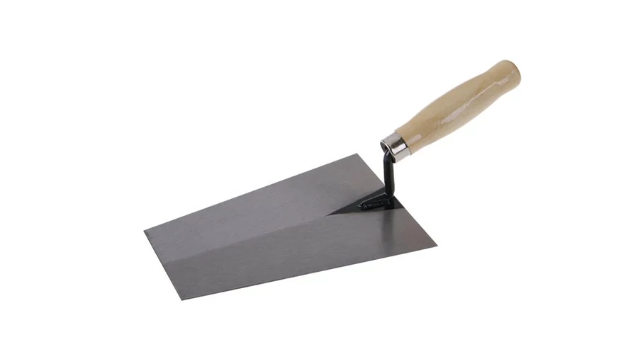 Csiszolt acél kanál 240 x 140 mm, fa nyéllel. A fogantyú fából készült, lakkozott. A kőműves simító vakolására és falazatok, például tégla, pórusbeton, kő lerakására szolgál.