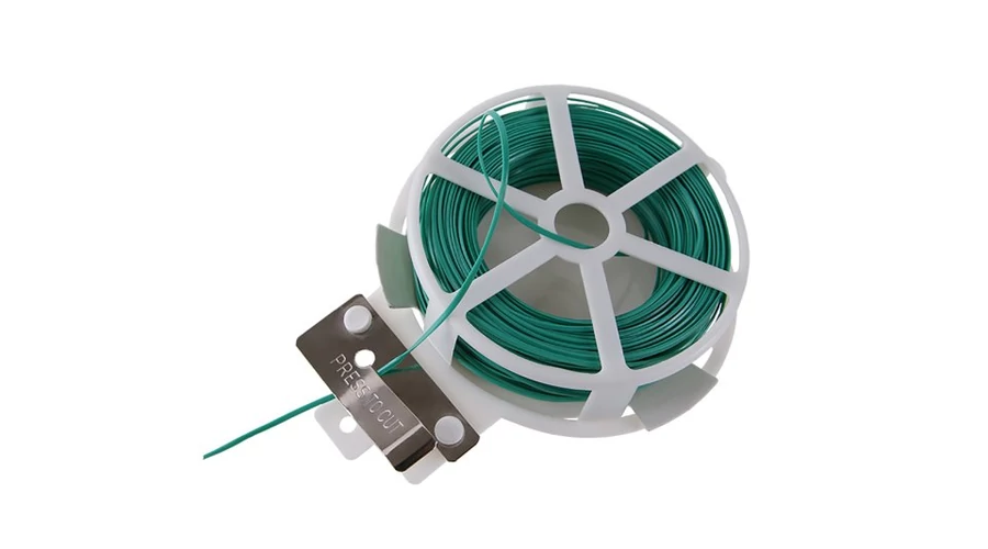 Kötözőhuzal vágóval, hossz 30m, PVC réteg, praktikus csomagolás tekercsben, mely egy egyszerű vágószerkezetet is tartalmaz, felhasználás: dekorációs, kertészeti és művészeti célokra, csomagolás: eurólyukkal ellátott buborékfólia.