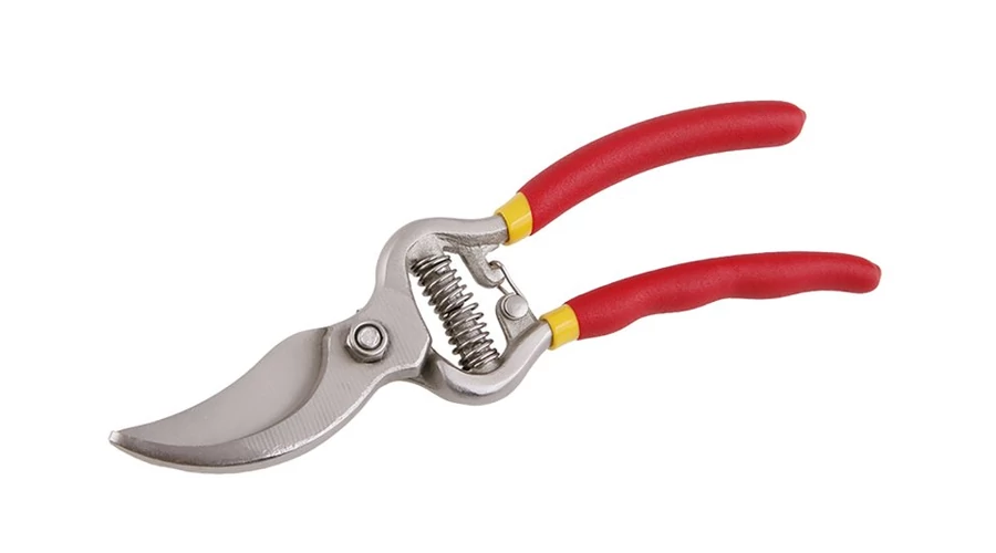 Kerti olló - kovácsolt, ergonomikusan kialakított nyél lágyított gumival a kényelmes és kényelmes fogásért, félkerekű penge, teljes hossza 21 cm, felhasználása: fák, növények stb. vágásához, csomagolás: eurolyukkal ellátott buborékfólia.