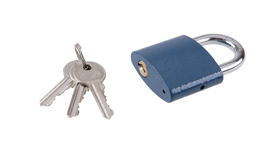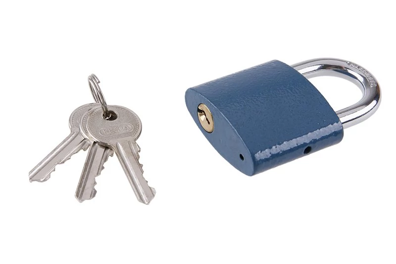 A zár acél teste, Sárgaréz betét, Súly: 290g, 3 kulcs, Erősített edzett acélív a jobb vágásállóság érdekében.