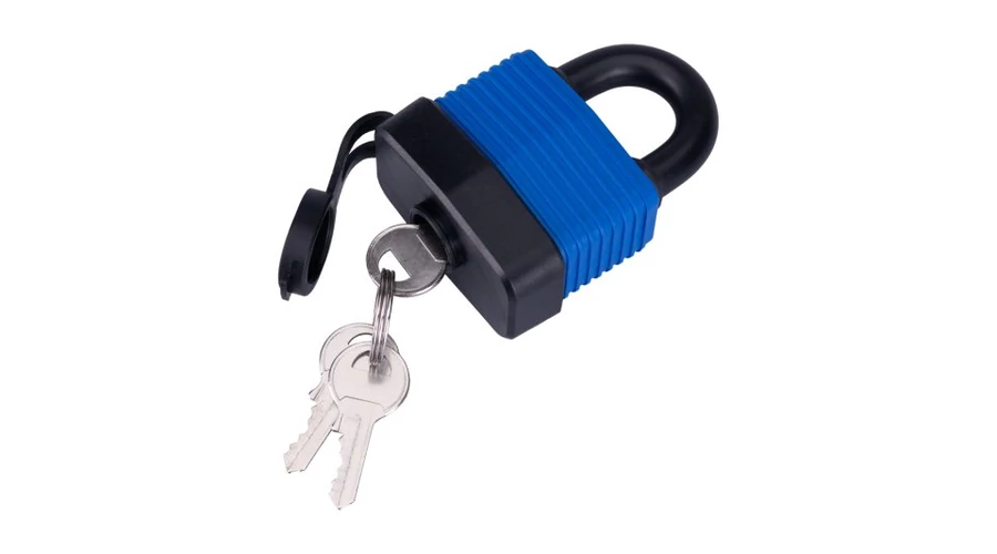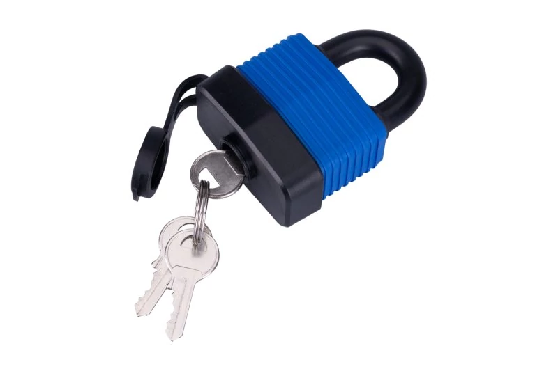 60 mm-es acél test műanyaggal bevonva a maximális víz- és nedvességállóság érdekében. Edzett acél ív műanyag bevonattal a jobb vágásállóság érdekében Súly: 430g 2 acélkulcs.