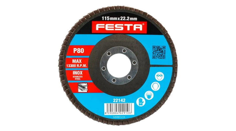 Szemcseméret: 80 Szemcsék típusa: cirkónia Kötőanyag: műgyanta Hátlapanyag: rugalmas szövet-100% pamut (240-260g/m2) Kivitel: ívelt belső átmérő: 22,2mm Max. Működési sebesség: 80m/s Max. megengedett sebesség: 13300 1/min.