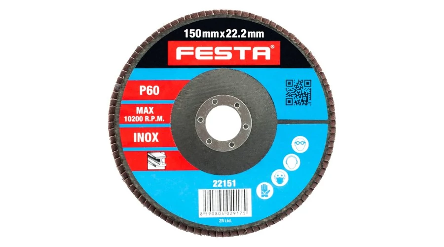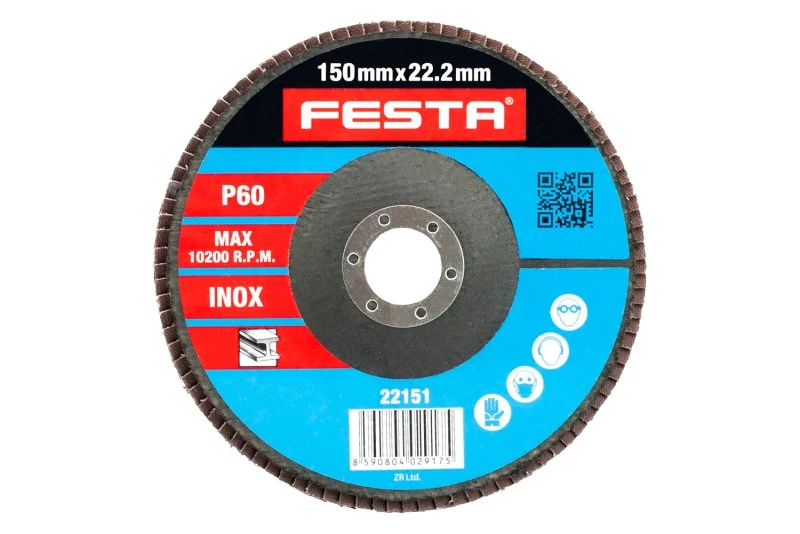 Szemcseméret: 60 Szemcsék típusa: cirkónia Kötőanyag: műgyanta Hátlapanyag: rugalmas szövet-100% pamut (240-260g/m2) Kivitel: ívelt belső átmérő: 22,2mm Max. Működési sebesség: 80m/s Max. megengedett fordulatszám: 10200 1/min.