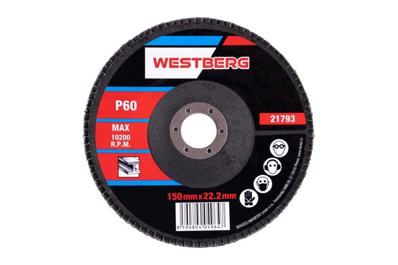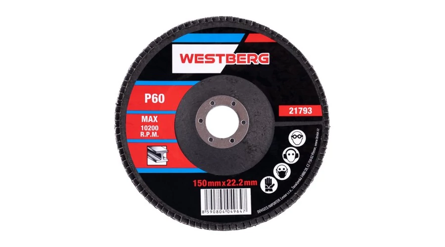 Lapos tárcsa, szemcsésség: 60 szemcsetípus: alumínium-oxid kötőanyag: műgyanta alapanyag: rugalmas szövet - 100% pamut (240-260g/m2) kivitel: íves furat: 22,2mm, munkasebesség: 80m/s, max. megengedett fordulatszám: 13300 1/min, felhasználás: csiszolás, csiszolás, festék levágása, ..., méretek: a termék megnevezésében szerepel.