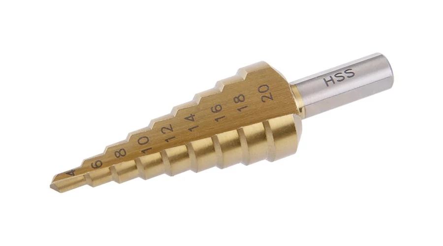 - lépcsőfúró minőségi DIN 1412C HSS acélból TiN réteggel