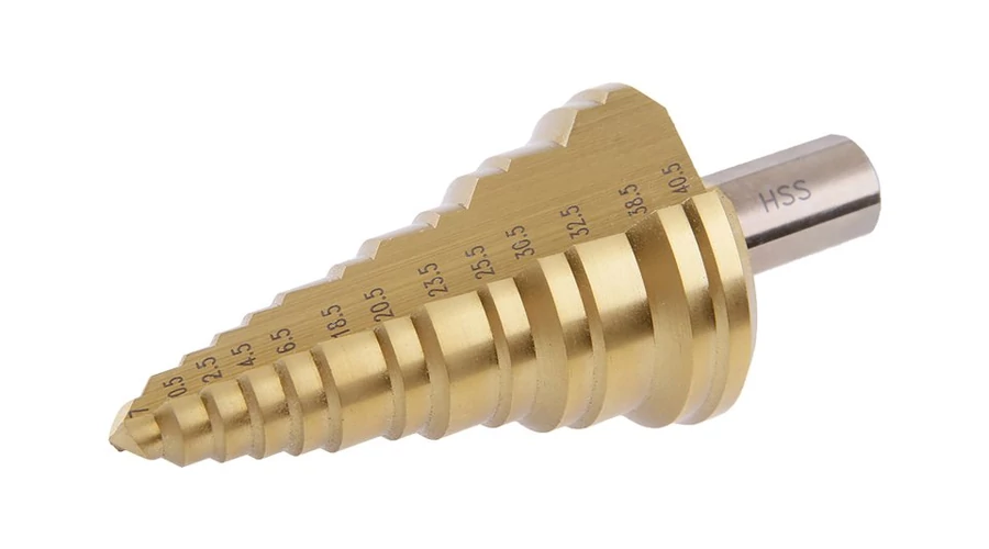 - lépcsőfúró minőségi DIN 1412C HSS acélból TiN réteggel
