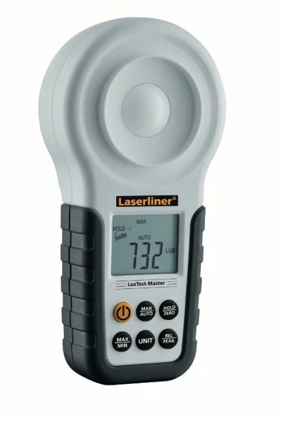 Professzionális fényintenzitás mérő készülék munkahelyek, irodák, középületek és ipar számára. Érzékeny fotodióda koszinusz korrekcióval a nagylátószögű fényméréshez. Csúcsminőségű funkció a megvilágítási szintek gyors változásainak regisztrálásához. Reset funkció. 1/4 állvány menet. Mérési tartomány 20 Lux...200000 Lux. Tartozék: LuxTest-Master, akkumulátor, szállítótáska