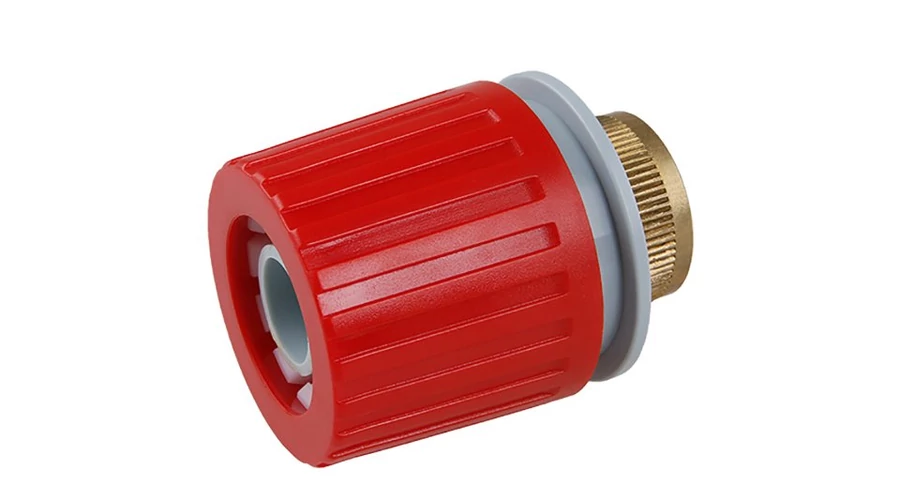 Tömlőszűkítő a tömlők egyszerű csatlakoztatásához, a csatlakozó műanyagból és sárgarézből készül.