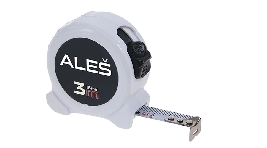 Mérőszalag névvel, edzett szalag, ABS műanyag mérőtok, széles, könnyen leolvasható skála nagy számokkal, hurok, övcsipesz. CE tanúsítvány - kalibrálásra alkalmas mérő.