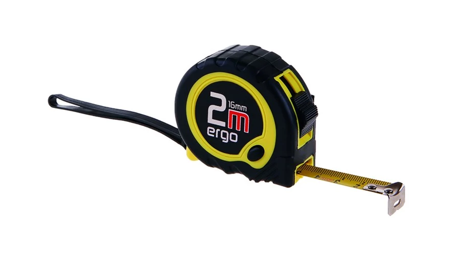Kiváló minőségű mérőszalag, edzett szalag, jól leolvasható mérleg, ABS műanyagból készült mérőház gumi védelemmel - nagyobb ütésállóság és jobb stabilitás a mérő kezelésekor, szabadon tárolható szalagütköző a külső és belső méretek mérésére, hurok, klip az övön.