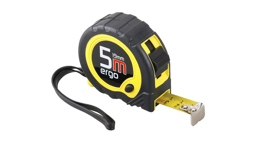 Kiváló minőségű mérőszalag, edzett szalag, jól leolvasható mérleg, ABS műanyagból készült mérőház gumi védelemmel - nagyobb ütésállóság és jobb stabilitás a mérő kezelésekor, szabadon tárolható szalagütköző a külső és belső méretek mérésére, hurok, klip az övön.