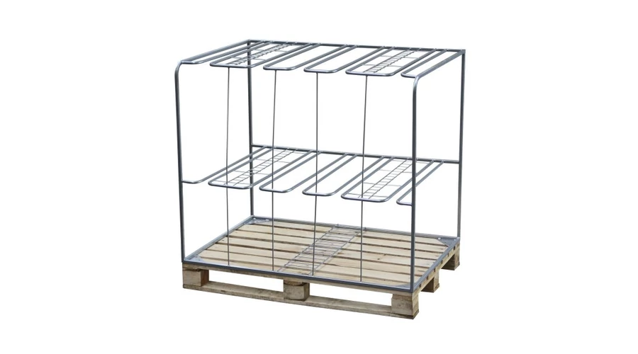 Mezőgazdasági szerszámokhoz (ásók, lapátok) való állvány raklappal