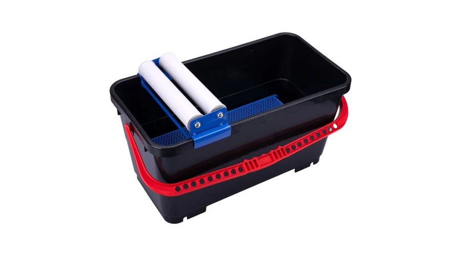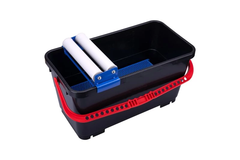 Mosókád - készlet, összetétel: 24 l-es tartály (90070), görgők (90071), fémrács (90072), könnyű és rendkívül ellenálló műanyag edény, műanyag bevonatú fémhengerek és comaxitizált rács, felhasználás: simítók és szivacsok mosására mosáskor a párosítás után megkímélő keverék, a görgők a víz kipréselésére szolgálnak a simítóból, a rács megakadályozza a szennyeződés kijutását a tartály aljáról.