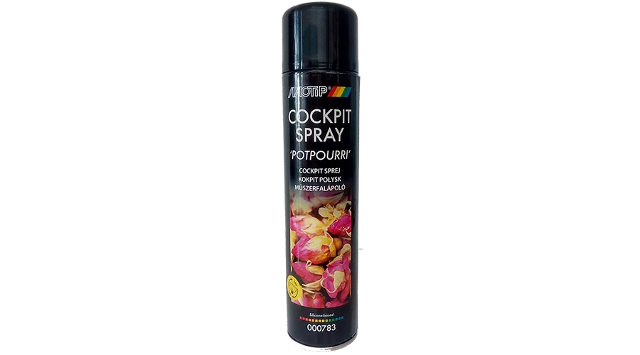 Virág illatú ápoló spray az autók műszerfalának és más műanyag alkatrészeinek tisztítására, védelmére és ápolására.