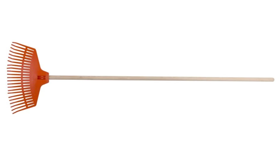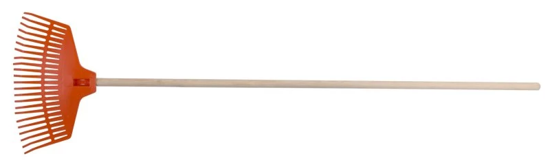 Műanyag gereblye levelek, fű vagy nemez gereblyézéséhez, 23 műanyag fog (léc). Fa nyéllel 160 cm.