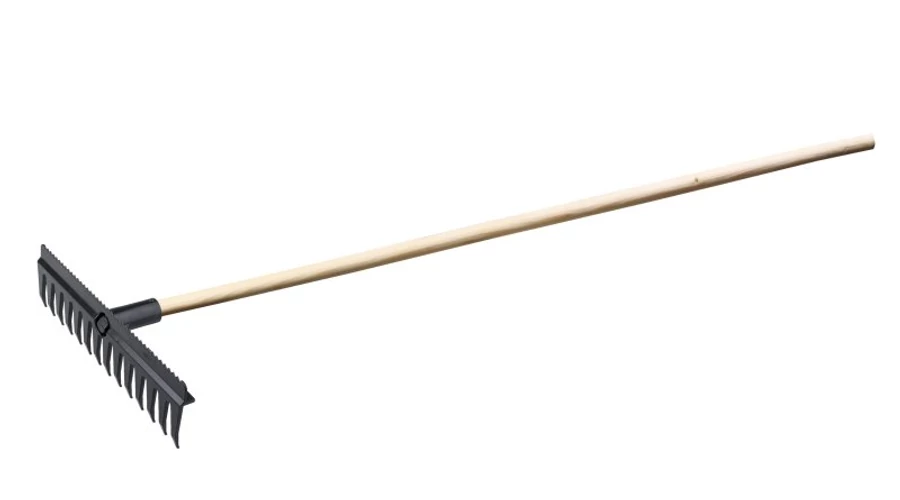 Műanyag gereblye 14 fogas műanyag szintező éllel. Használhatók a kertben virágágyás rendezésénél, levelek gereblyézésében. Fa nyéllel 160 cm.