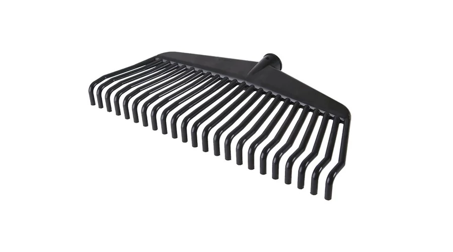 Műanyag gereblye - lamellás, lamellák száma 23, felhasználása: fű gereblyézésére szolgál, nyél nélkül.