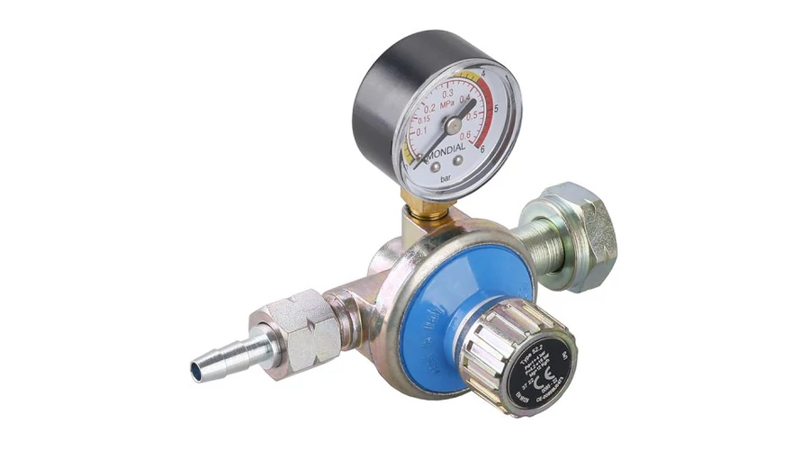 - nagynyomású szabályozó gáznemű közegekhez, szabályozással és nyomásmérővel