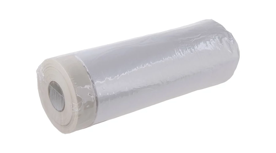 Öntapadós szalag fóliával, mérete: 180 cm (a fólia kiterített szélessége) x 30 m (tekercs hossza), felhasználása: felületek szennyeződés elleni védelmeként az öntapadó szalag egyszerű rögzítést tesz lehetővé, a fólia rész után kinyílik felhordás - ragadós és védi a felületet a szennyeződéstől, különösen festéskor.