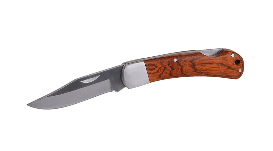 WOODY összecsukható kés. A zárt kés hossza 100 mm. Kés nagyméretű összecsukható pengével, sokféle felhasználásra. Minőségi fa fogantyú. Bevágás a pengén a könnyű nyitás érdekében. Súlya 0,642 kg.
