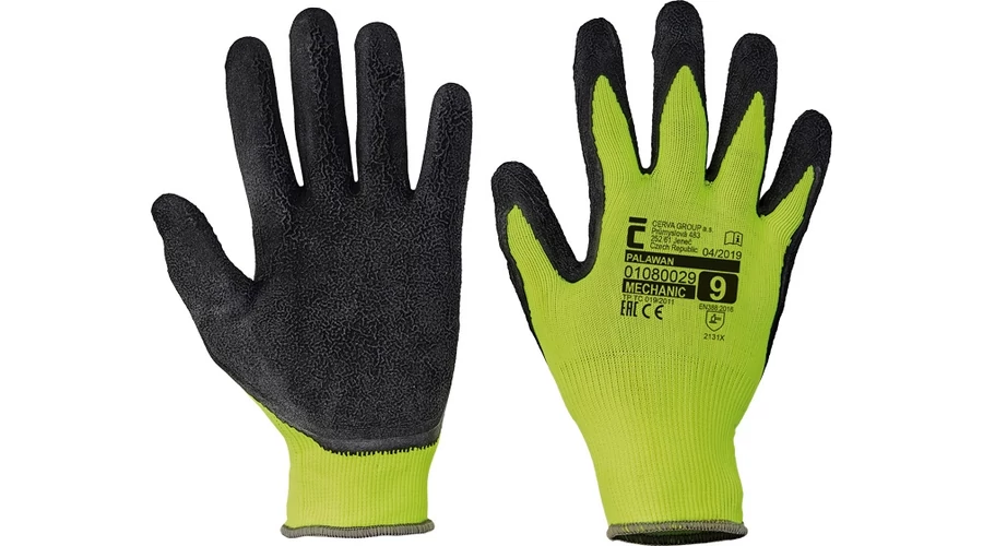 Szintetikus, tenyéren latex gumiban mártott kötött védőkesztyű.