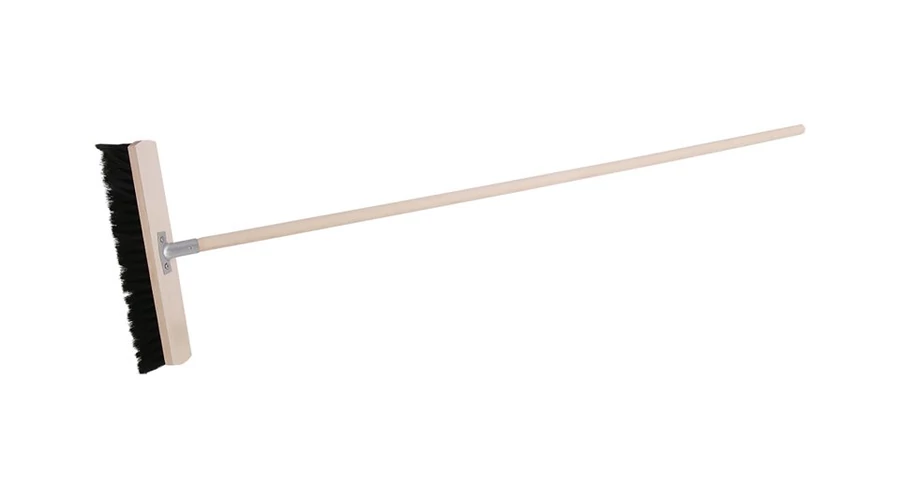 Klasszikus fa csarnokseprű fém tartóval, menet nélküli nyélhez. PET/gumi szálak. Fa nyél átmérője 22 mm, hossza 150 cm.