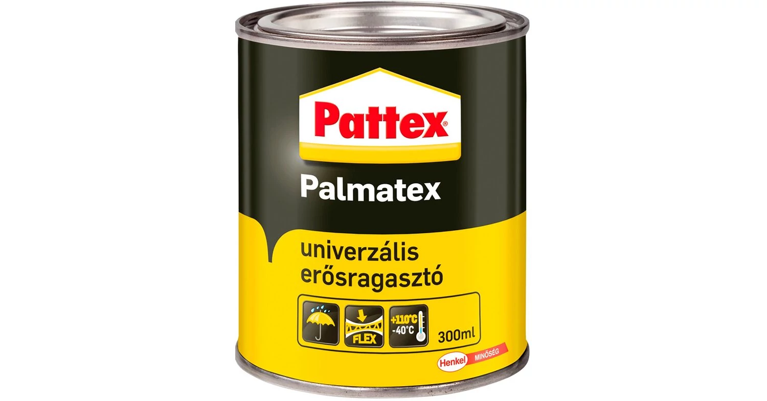A Pattex Palmatex univerzális erősragasztó a kontaktragasztók leggyakrabban használt típusa, rendkívül széles felhasználhatóság jellemzi. Gyorsan és nagyon erősen ragaszt. Könnyen kenhető, szinte minden felület ragasztható vele (nem alkalmas PE, PP, habosított polisztirol – Styropor® – és lágy PVC ragasztásához). Vízálló, a ragasztás ellenáll híg savaknak és lúgoknak.