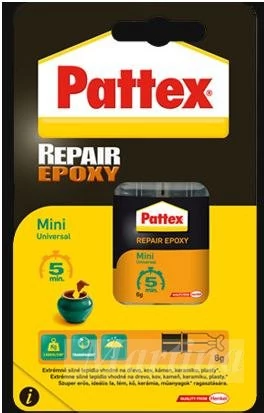 A Pattex Repair Universal epoxi ragasztót erős kötéshez ajánljuk, mivel 5 perc alatt megköt, így marad ideje a teljes megkötés előtti igazításhoz.