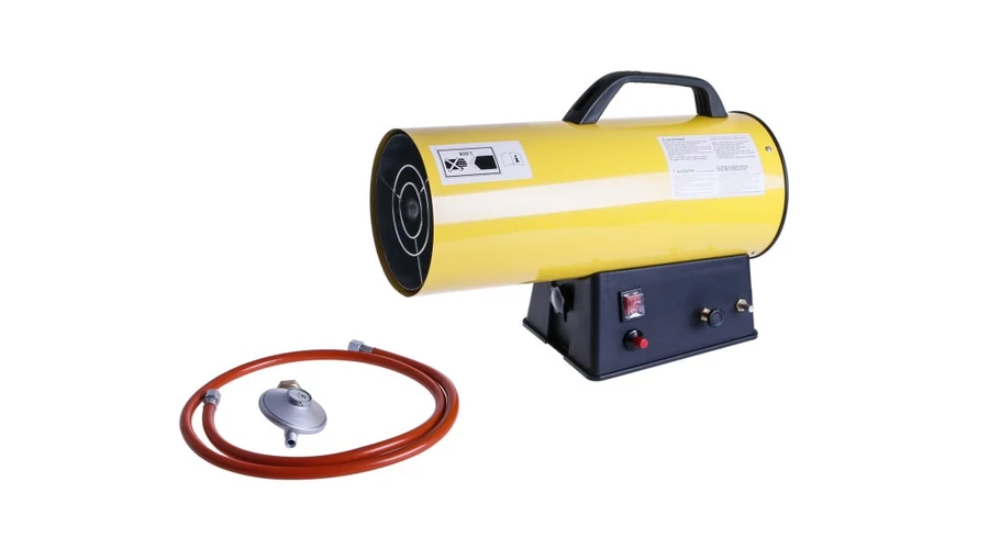 A gázfűtők azonnal nagy mennyiségű hőt képesek előállítani. Ezeknek az eszközöknek a működése nagyon jövedelmező, hatékony és megbízható. A hordozható gázfűtők jól szellőző helyekre alkalmasak, mint például gyártócsarnokok, raktárak és építkezések. Ez a gázfűtés propán-butánnal működik. Célja a tüzelőanyag energetikai értékének teljes kihasználása a levegő és a füstgázok közötti hőcsere miatt. Ez a termék megfelel a CE EN 1596:1998 + A1:2004 irányelvnek. Típus ZSG 151, Gáz G30-I3B/P, Gáznyomás 0,7bar, Névleges feszültség 230V 50Hz, Motor teljesítmény 25W, Max. gázfogyasztás 1,11 Kg/h, Max. hőteljesítmény 15KW, max. forró levegő mennyisége 300m3/h. A csomag tartalmazza: nyomásszabályozó, tömlő 1,5 m-es végekkel.