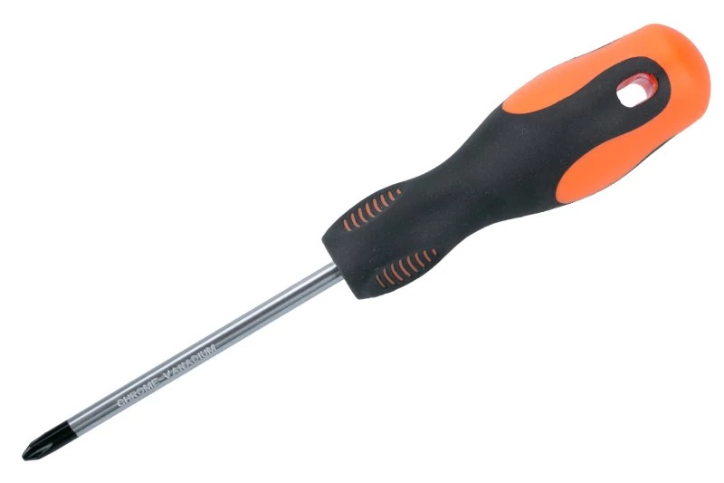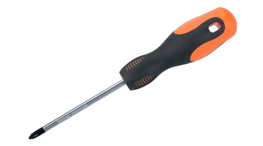A csavarhúzó fém szára kiváló minőségű króm-vanádium acélból készült, az edzett hegye mágneses, a markolat polipropilén és gumi kombinációja és ergonomikus formája jó csúszásgátló tulajdonságokat, valamint kenőanyagokkal és vegyszerekkel szembeni jó ellenállást garantál.