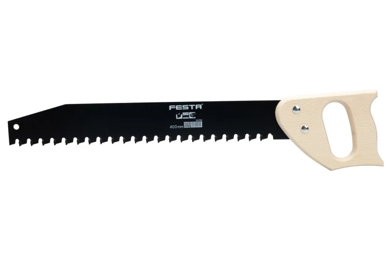Ergonomikus masszív fa fogantyú Merev acéllemez keményfém betétekkel, garantálja a hosszú távú vágási teljesítményt Beépített fogak száma: 22 Munkahossz: 450mm Felhasználás: professzionális fűrész pórusbeton blokkok és kisebb szigetelőlapok vágásához.