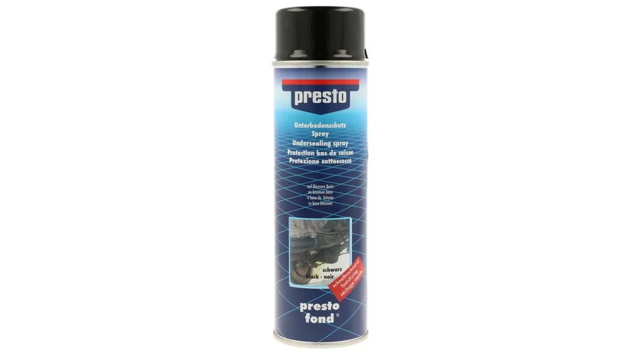 A Presto bitumenes alvázvédő egy sűrű, tartós bevonat, amely megbízható védelmet nyújt a járművek és gépek alvázrészein, különösen a kerékívek környékén. Hatékonyan zárja ki a nedvességet, véd a kőfelverődés, rozsda és más külső hatások ellen.