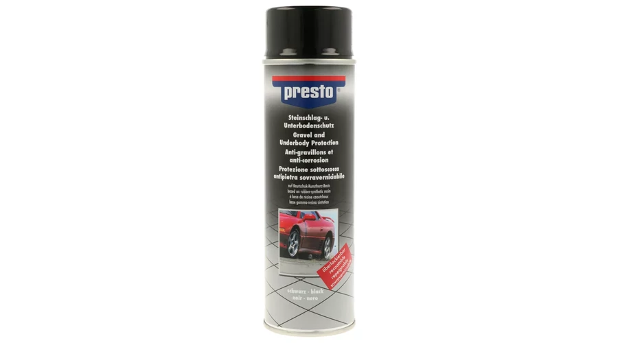 A Presto kavics felverődés elleni alvázvédő Ideális kőfelverődés- és korrózióvédelem bármely gépjármű alvázára. Átfesthető, így különösen jól alkalmazható a látható területeken. Kemény, ugyanakkor rugalmas bevonatot képez, amely védelmet nyújt a kőfelverődések ellen. Kiválóan ellenáll az időjárás viszontagságainak, a fröccsenő víznek és a kopásnak, valamint gyenge savaknak és bázisoknak is.
