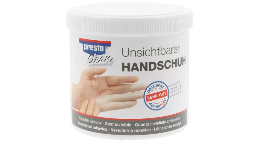 A Presto Invisible Glove „láthatatlan kesztyű” speciálisan fejlesztett védőkrém, amely hatékonyan óvja a kezet a különféle szennyeződésektől – például olajtól, lakkoktól, festékektől, masztixtól, ragasztóktól, poliuretán habtól és más makacs anyagoktól. Vékony, láthatatlan védőréteget képez, amely megkönnyíti a kéz tisztítását, miközben nem befolyásolja a bőr természetes érzetét vagy a munkavégzés pontosságát.
