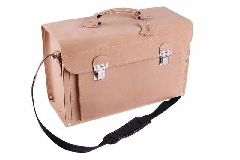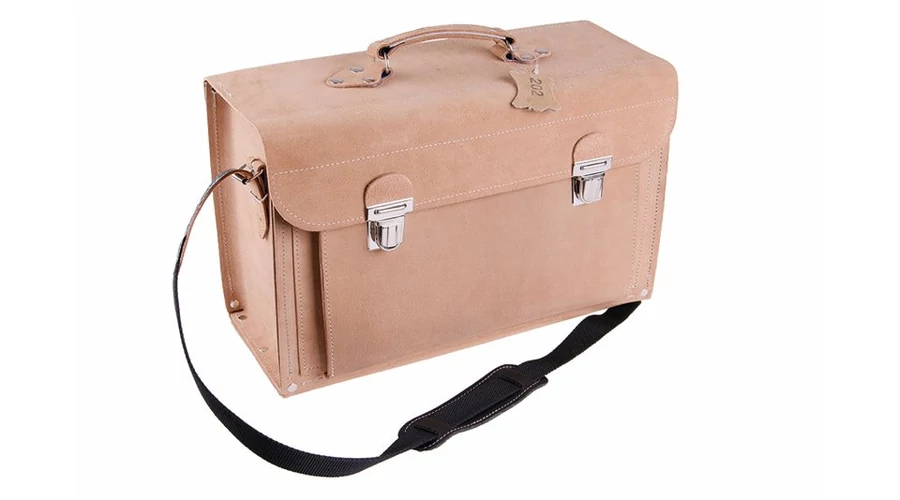 Professzionális összeszerelő táska. A táska természetes bőrből készült, minden oldalról erősen megerősített. Három sor belső szerszámzsebet és egy elülső zsebet tartalmaz. Ez egy nagyon tartós és kiváló minőségű táska, amely még a legigényesebb felhasználók igényeit is kielégíti. A táska speciális Amann PES cérnával van varrva, a cérna teherbírása 12 kiló, a varratok a szabad helyeken szintén szegecselve vannak. Jellemzők: fogantyú, vállpánt vállpánttal, erősen megerősítve. Belső szerkezet: 1 zseb az elülső részen iratok számára, 3 soros szerszámrekesz. Erősítések: alul, hátul, oldalt, elöl és hátul. Fő anyaga: természetes marhabőr védőlakkkal.