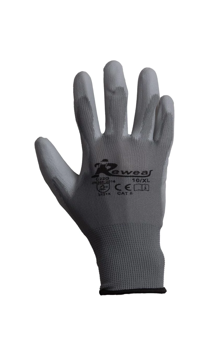 PU szürke kesztyű tenyéren mártott 9-es méret, 1 pár