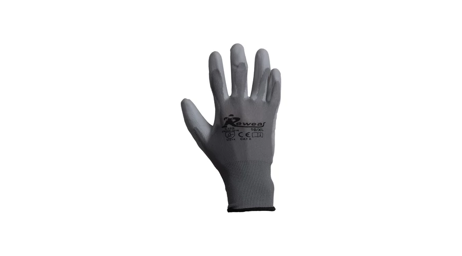 PU szürke kesztyű tenyéren mártott 10-es méret, 1 pár