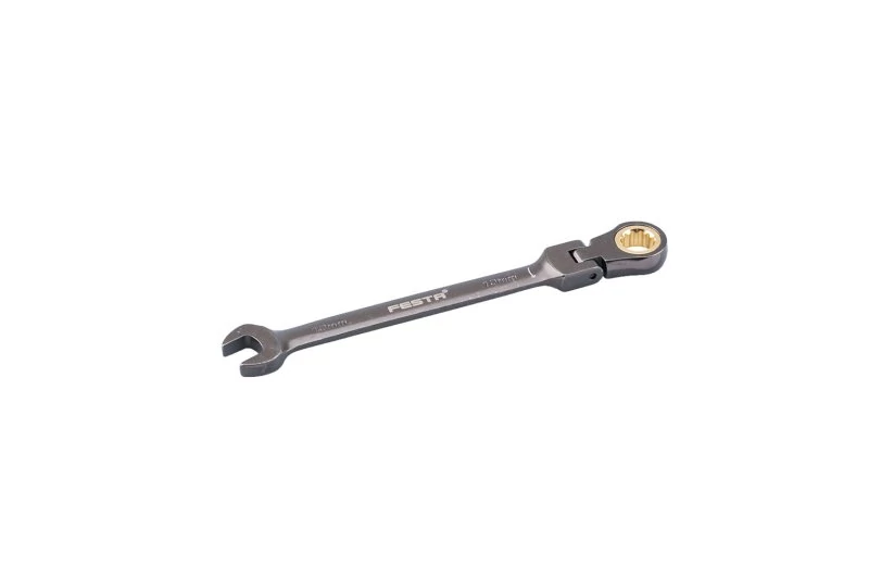 A FESTA racsnis villáskulcsok szögben használható csuklóval a racsnis (racsnis) előnyével minőségi króm-vanádium acél vasalatokból készülnek. Ez az acél felülete matt kemény krómmal van kezelve az optimális felületi keménység és a korrozív hatásokkal szembeni ellenállás elérése érdekében. A villáskulcs racsnija 72 edzett fogból áll, 5 ívfokban kapcsolva. Minőség, keménység és pontosság tekintetében pontosan megfelelnek a DIN/ISO szabványnak.