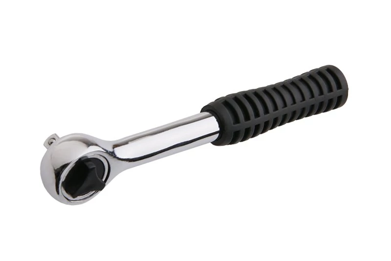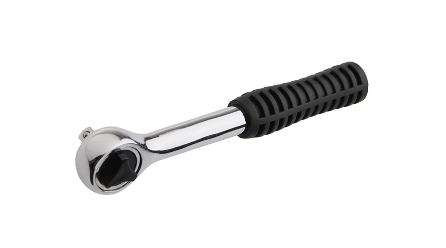 Fém racsnis 36 foggal és billenőkarral. Csúszásmentes gumi fogantyú. Korrózióálló króm bevonat. Gyors és egyszerű fejcsere.