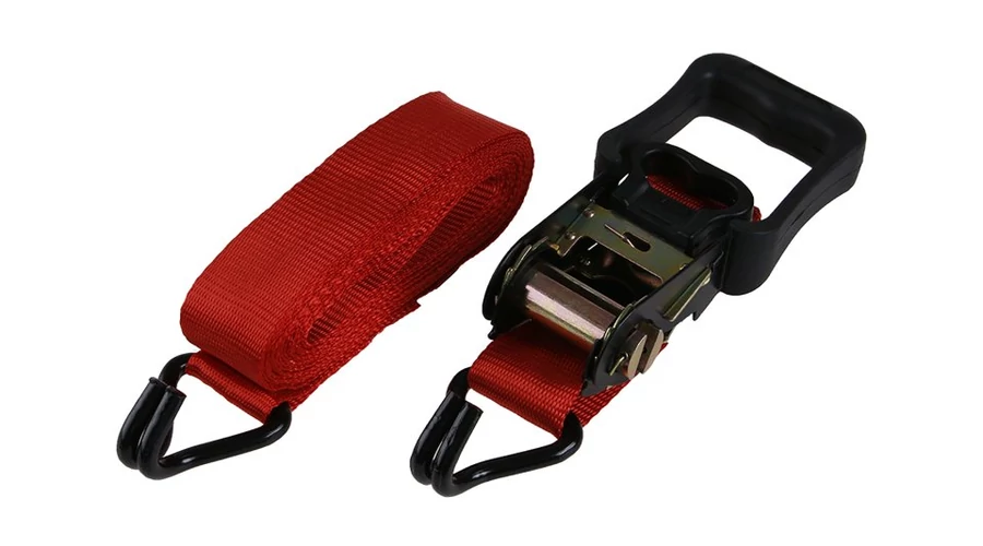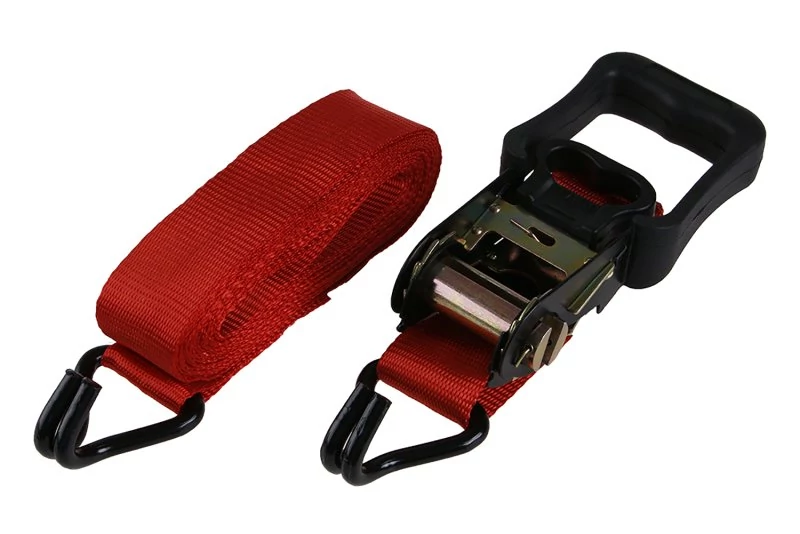 A racsnis zárral ellátott textil hevederek a rakomány szállítás közbeni rögzítésére és sérülésének megelőzésére szolgálnak. Szín piros. TÜV/GS jóváhagyás, teherbírás 480 kg.