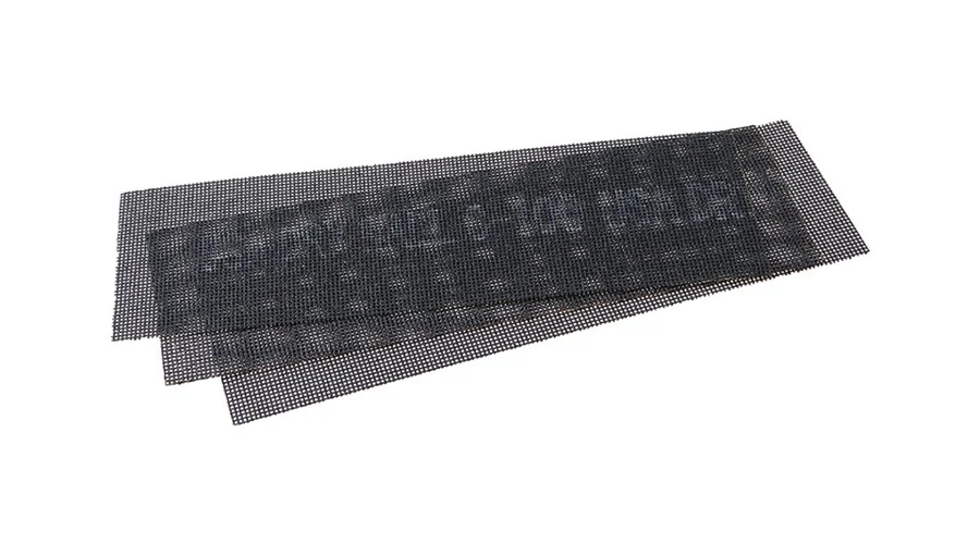Csiszolórács 93 x 290 mm, szemcse 100, 3 db/szett euro lyukkal, üvegszálas hordozószövet, gyantával ragasztott szilícium-karbid csiszolószemcsék antisztatikus bevonattal, alkalmas gipszkarton fugakeverékek és egyéb anyagok csiszolására, az előnye a A rácsszerkezet a hagyományos csiszolópapírokhoz képest abban áll, hogy nem tömődött el őrölt anyag.