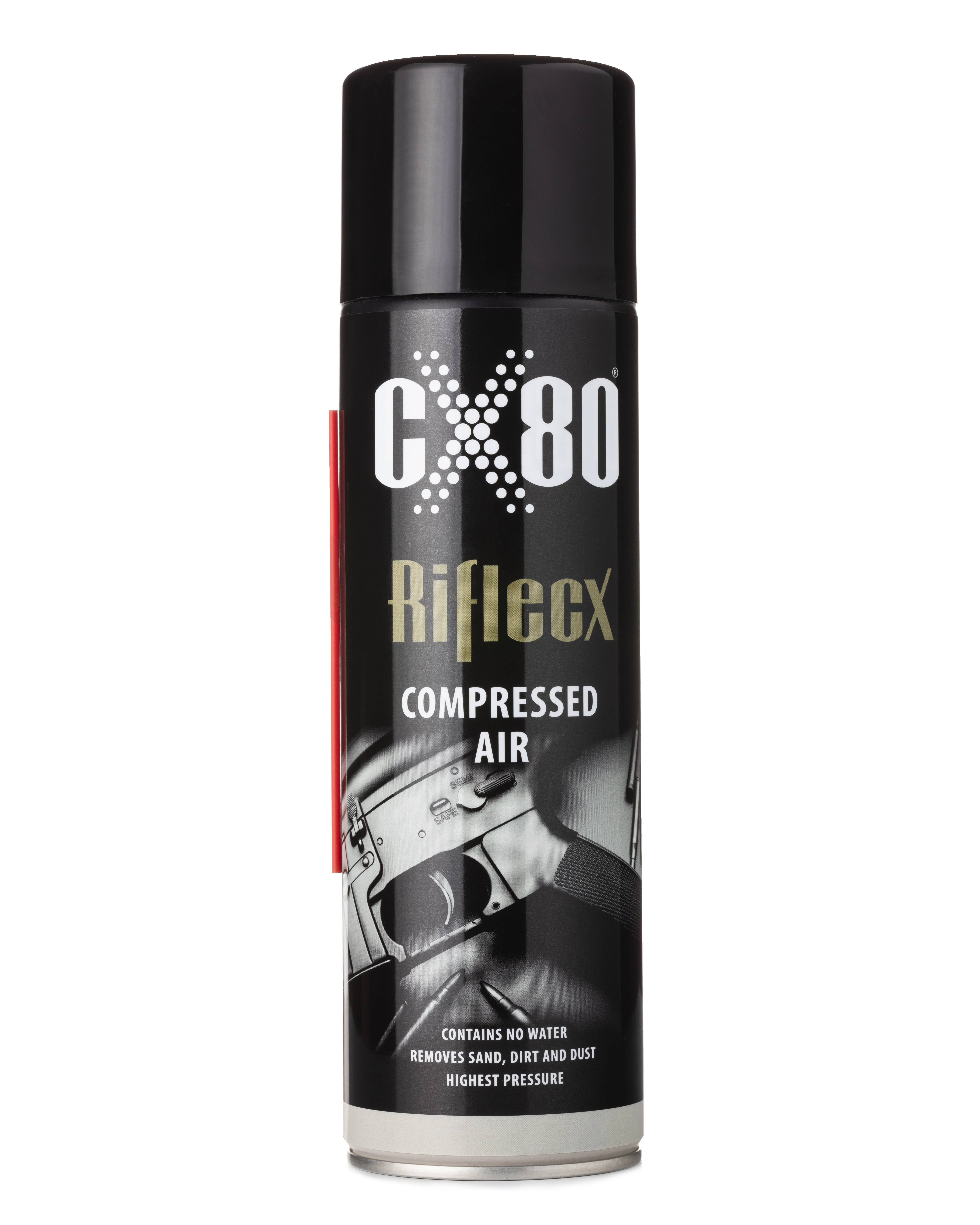 A száraz levegő erőteljes, koncentrált fúvása megtisztítja a fegyver alkatrészeit a szilárd szennyeződésektől, valamint a tisztítószer- és vízmaradványoktól.