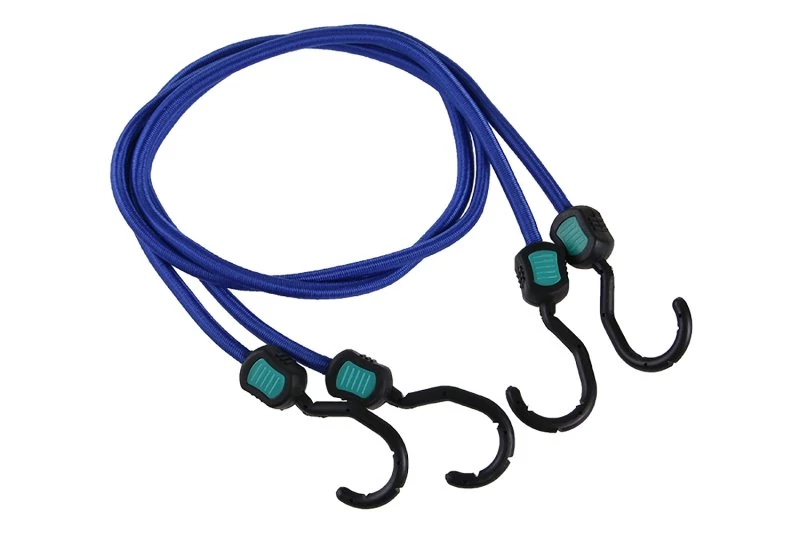 Klasszikus rugalmas heveder műanyag bevonatú acél kampókkal, 2x1 m, tárgyak rögzítésére. A szíj gumiszálakból készült, fonott szintetikus elasztikus szövettel.