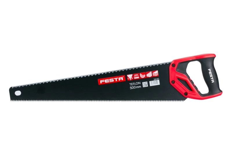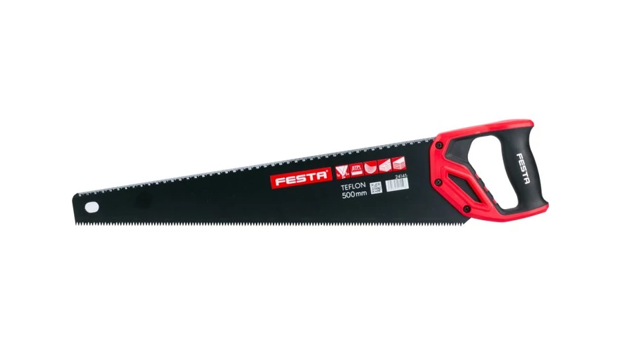 Munkafelület hossza: 500 mm-es ABS fogantyú lágyított TPR gumival Nagyfrekvenciás edzett háromszoros köszörülésű fogak Keménység: 47-52HRC Fogazás: 7TPI A fogantyú lehetővé teszi a 45 és 90 szögek jelölését.